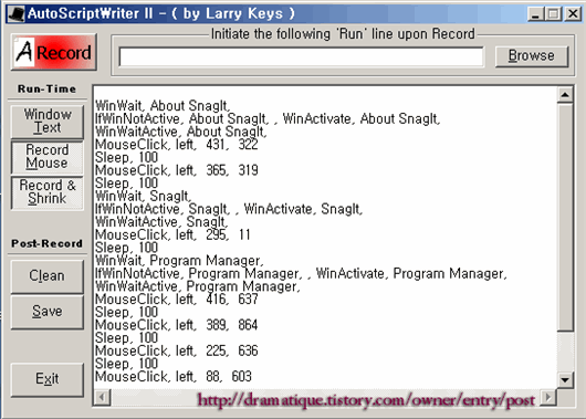 좌표 따는 도구는 Autoscript Writer이며 차츰 개념이 잡히면 이 유틸리티도 쓸만하 다는 걸 알게 되지요.