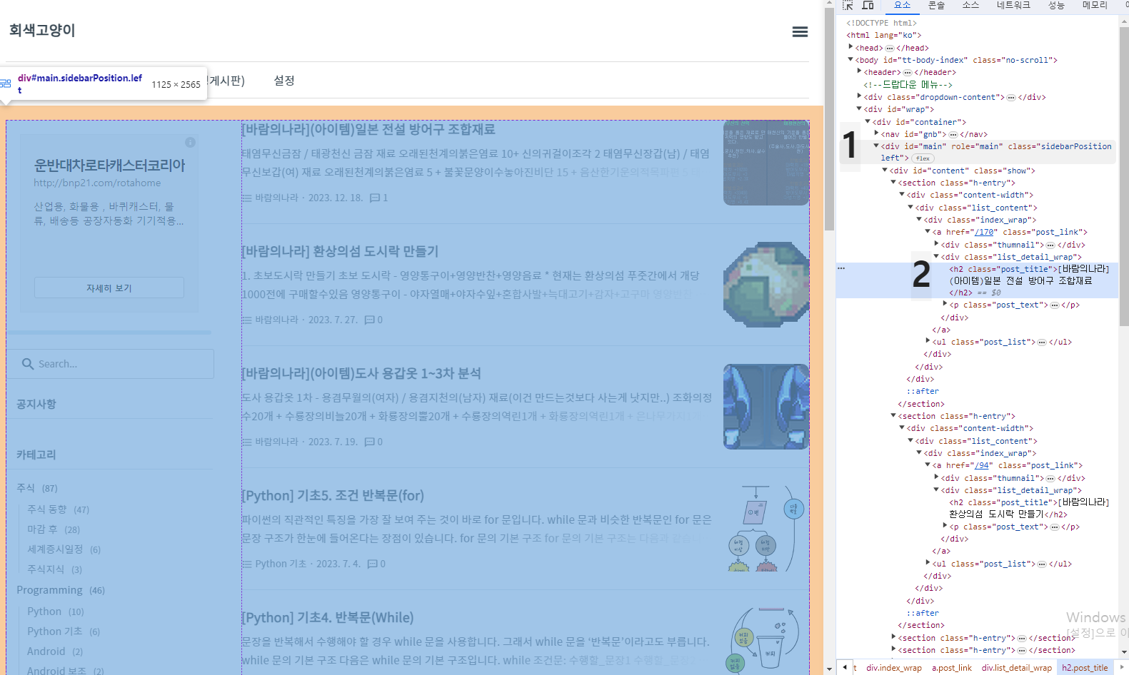html의 태그를 잘 봐야한다