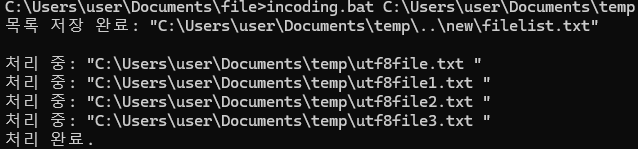 하여 incoding.bat "C:\Users\user\Documents\temp"
