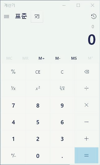 윈도우10에 내장된 계산기는 아래와 같이 생겼다.